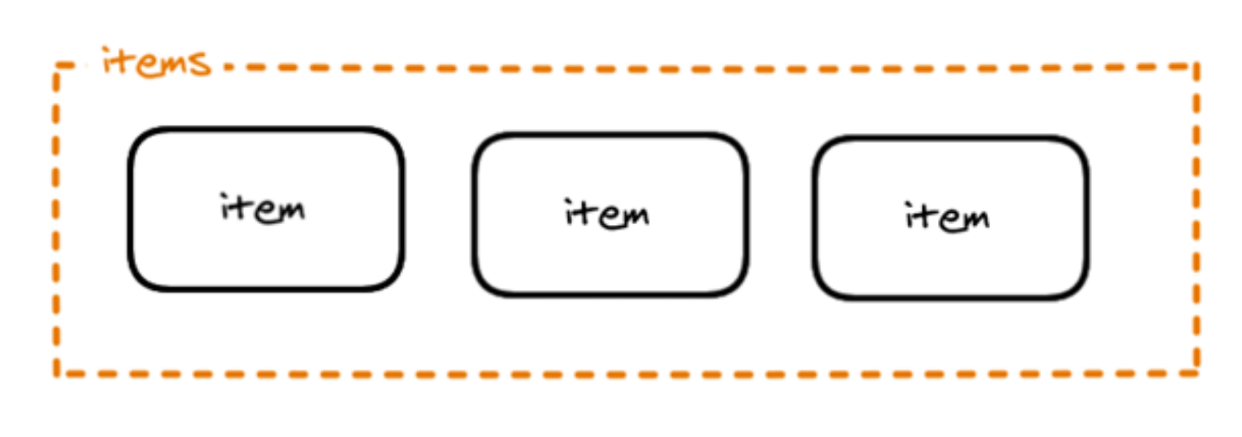 Data sent from one node to another is sent as an array of JSON objects. The elements in this collection are called items.